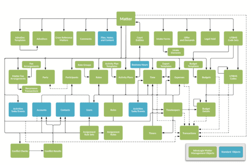 The matter management Data Model in Advologix, built on the Salesforce platform, provides a comprehensive and flexible solution for legal practice management. It covers essential components such as matter details, parties involved, documents, tasks, time and billing, expenses, and communication logs, all of which are integral to effective matter management. With its robust integration capabilities, customization options, and scalability, Advologix helps legal firms streamline their operations and improve overall efficiency.