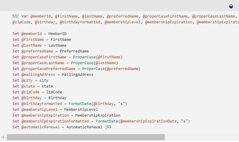 If you’re familiar with other programming languages, then you may already know what a variable is. For those that aren’t, a variable in AMPscript is a storage location for the information that you want to reference later within a script statement or function.