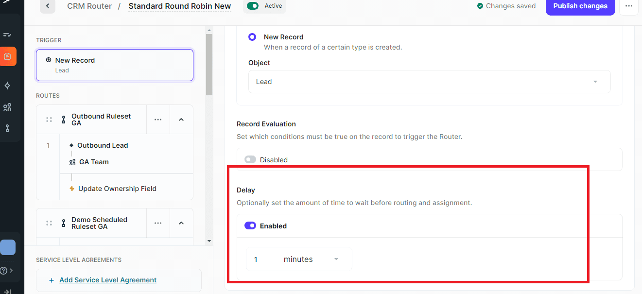 - Set a delay for your router. This will determine how long it takes for the user to be assigned to a salesforce record after the router is triggered(Optional).