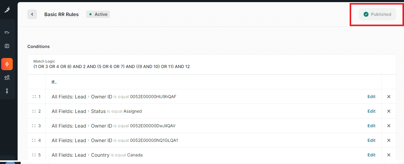 - Go to your Chili Piper crm_distro_Distro workspace and click on the Rules tab