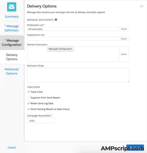iii. Configure the Email with AMPscript: