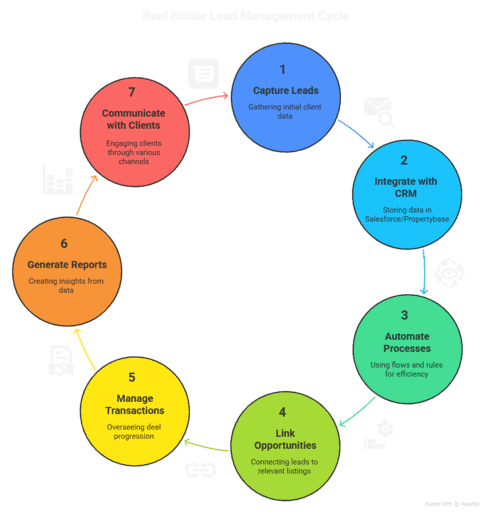 - How it works: Salesforce objects unify all lead sources. API integrations with Zillow, Trulia, and Realtor.com feed leads automatically.