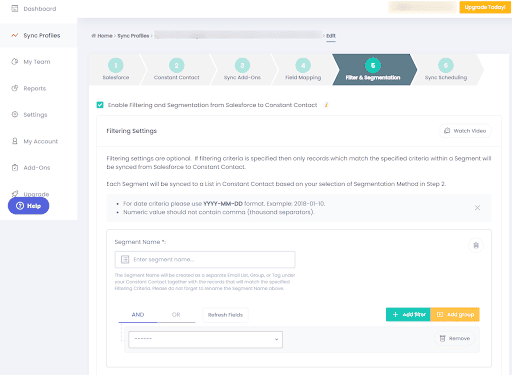 - Filtering takes your records, filters based on the specified criteria, and syncs the records into your Constant Contact.