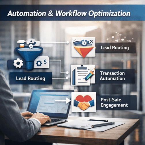 Lead scoring and routing ensure that high-value opportunities reach the right agents.