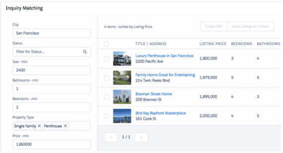 - Listing Matching:- in Propertybase, you can perform reverse matching on Inquiry data across your account, displaying Contacts that match the Listing. Easily email the Listing to selected Contacts without leaving the Matching feature.
