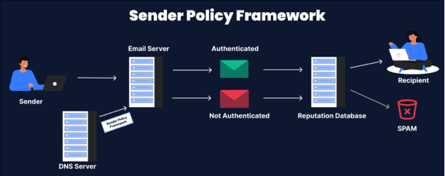 - A domain administrator creates a policy that specifies which mail servers are permitted to send emails from that domain. This policy, known as an SPF record, is included in the domain’s DNS records.