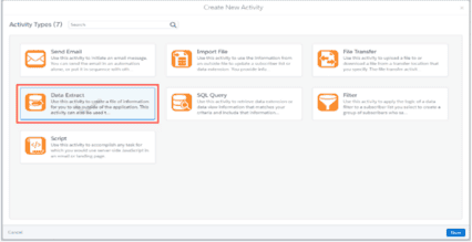 Marketing Cloud’s Automation Studio features a robust tool known as Data Extract, designed specifically for analyzing WhatsApp marketing campaigns. This tool enables users to generate downloadable files containing comprehensive data on WhatsApp messages dispatched via customer journeys or triggered sends.
