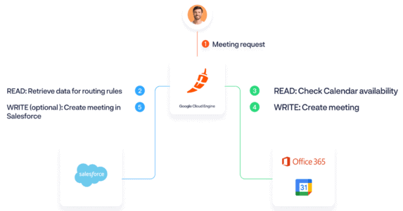 Chili Piper integrates seamlessly with Salesforce calendars to ensure accurate scheduling and availability checks by syncing your team’s calendars, preventing double bookings, and allowing prospects to book only available slots. It automatically creates and updates Salesforce events for every meeting, offering a centralized view of your team’s schedule, enhancing sales forecasting, and streamlining meeting management with features like round-robin scheduling and various meeting types—all managed effortlessly within Salesforce. It also syncs smoothly with popular calendar platforms like Google Calendar, Outlook, and Office 365.