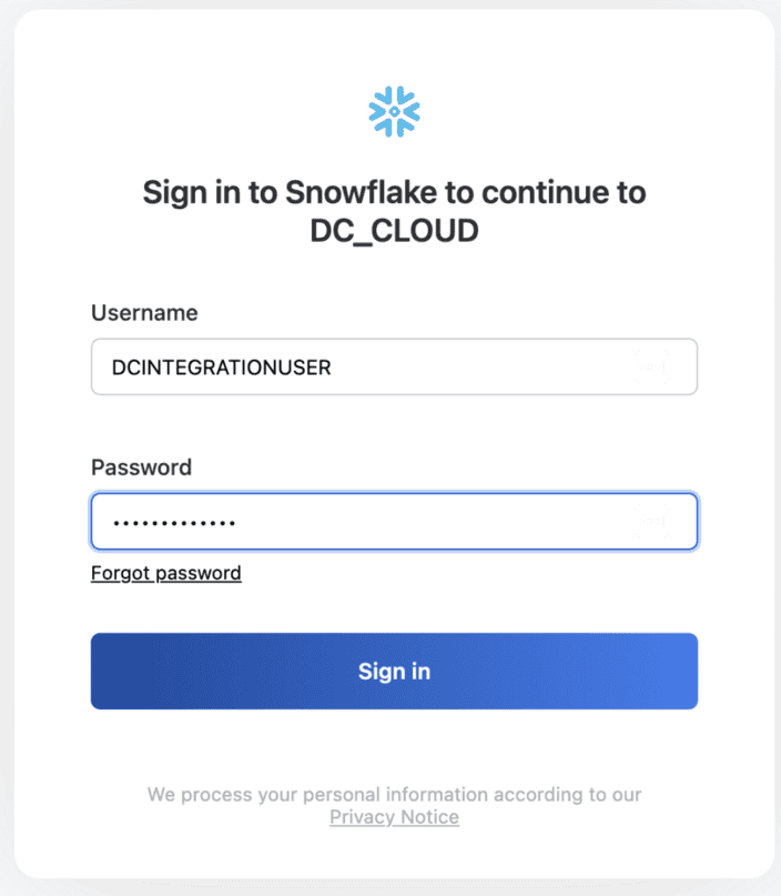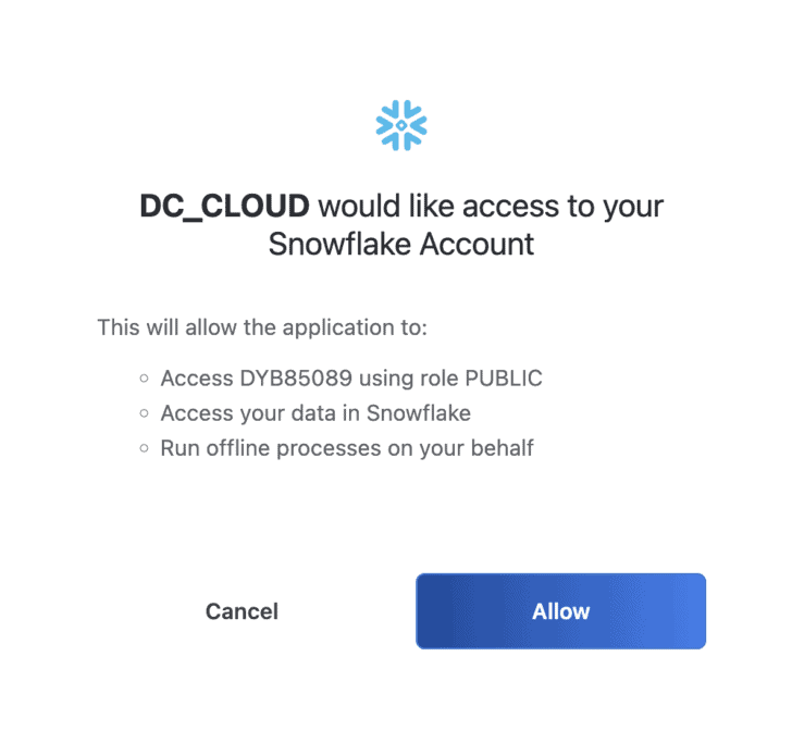 You are then redirected to another page, where you’ll need to click Allow to allow Salesforce Data Cloud to access your Snowflake account.