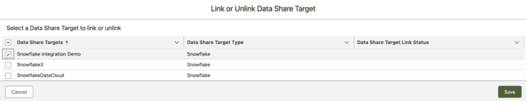 Next, choose your data share target by clicking the Link/Unlink Data Share Target button.