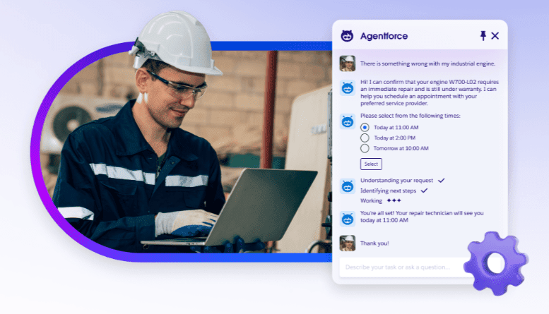 Think of Agentforce as a smart AI workforce that helps manufacturers accelerate revenue, reduce service costs, and improve factory-to-field collaboration.