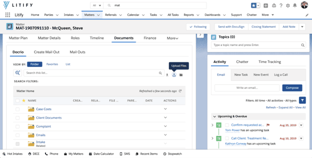 - Upload Document: Uploading documents in Litify is a simple and secure process. Begin by accessing the relevant case file and navigating to the document section. Click on the upload button, select the files from your device, and categorize them appropriately for easy retrieval. Litify’s platform supports various file types and ensures that all documents are stored securely, maintaining confidentiality and compliance. This efficient document management system enhances collaboration and ensures that all case-related materials are readily available to authorized team members.