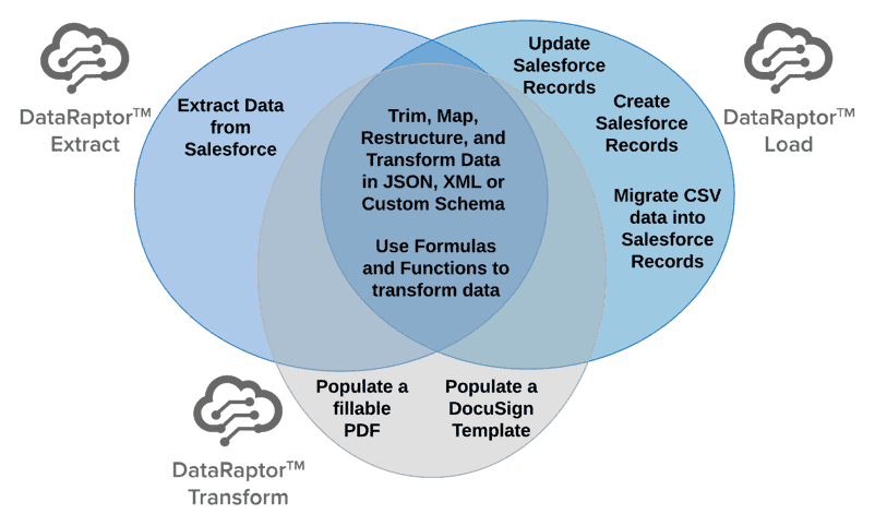 - DataRaptor Load — Transform and securely store data within Salesforce, ensuring seamless data management.