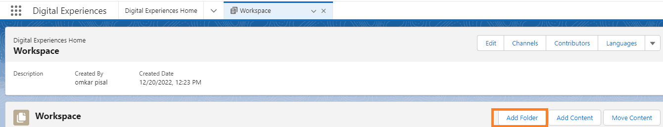 Create and update folders in your Salesforce CMS workspace to quickly manage your content.