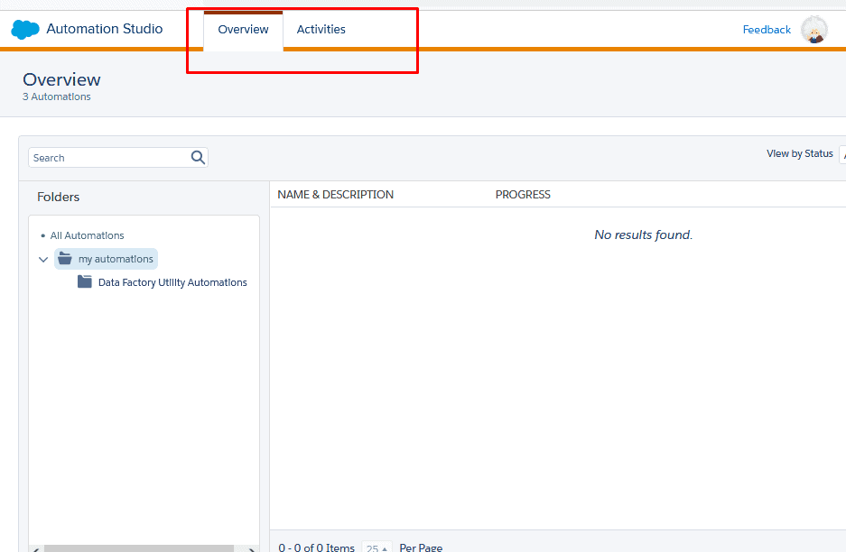 In Automation Studio there are two primary tabs – the overview, and the activities.